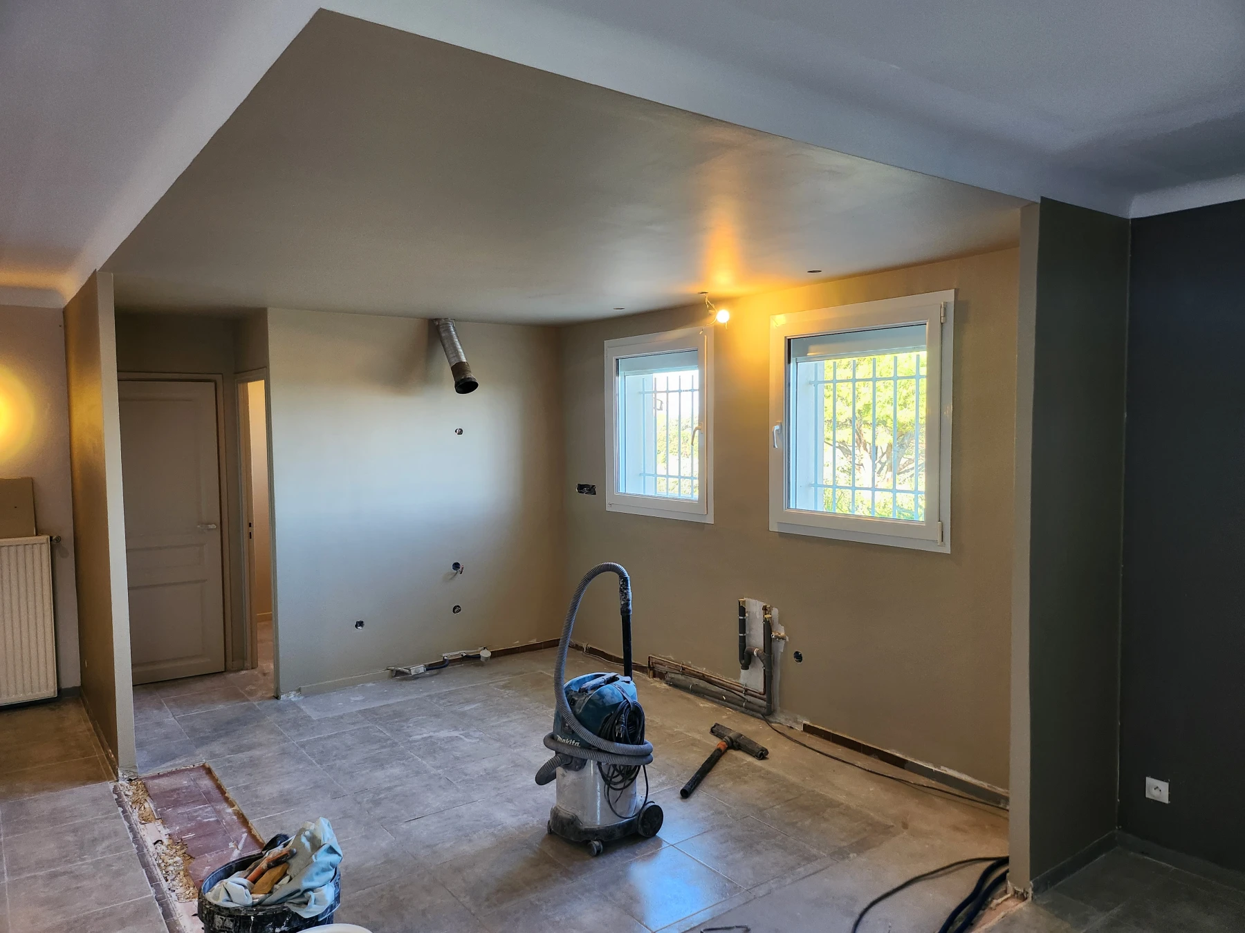 Chantier Caumont ouverture entre salon et cuisine